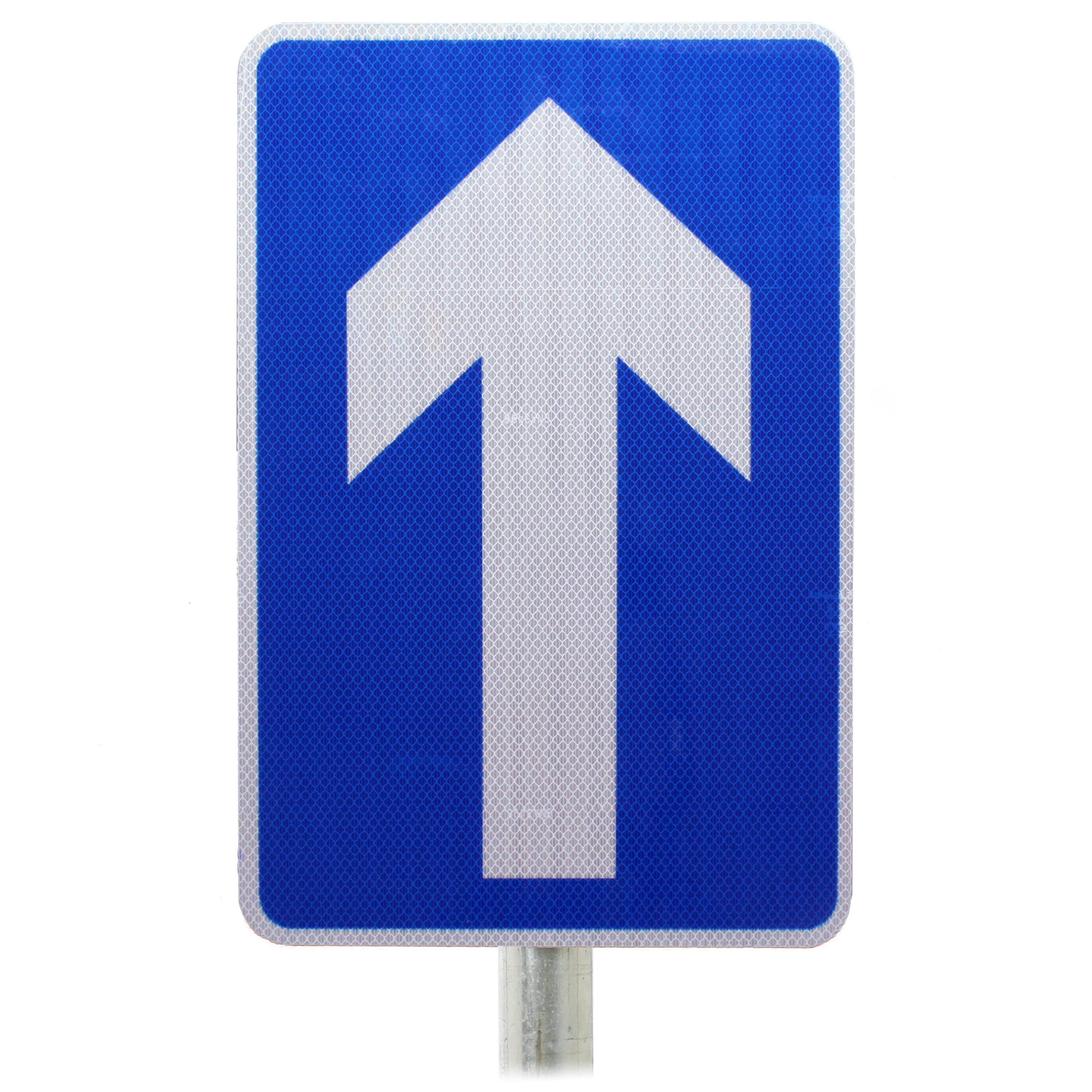 This one-way arrow sign is suited to use on one-way stretches of road where the traffic should only proceed in one direction. The diagram number for this sign is 652 and it comes in R2 (previously known as RA2) grade reflective material. Details of how this sign should be used can be found in the TSRGD guidelines Chapter 3 on page 25.