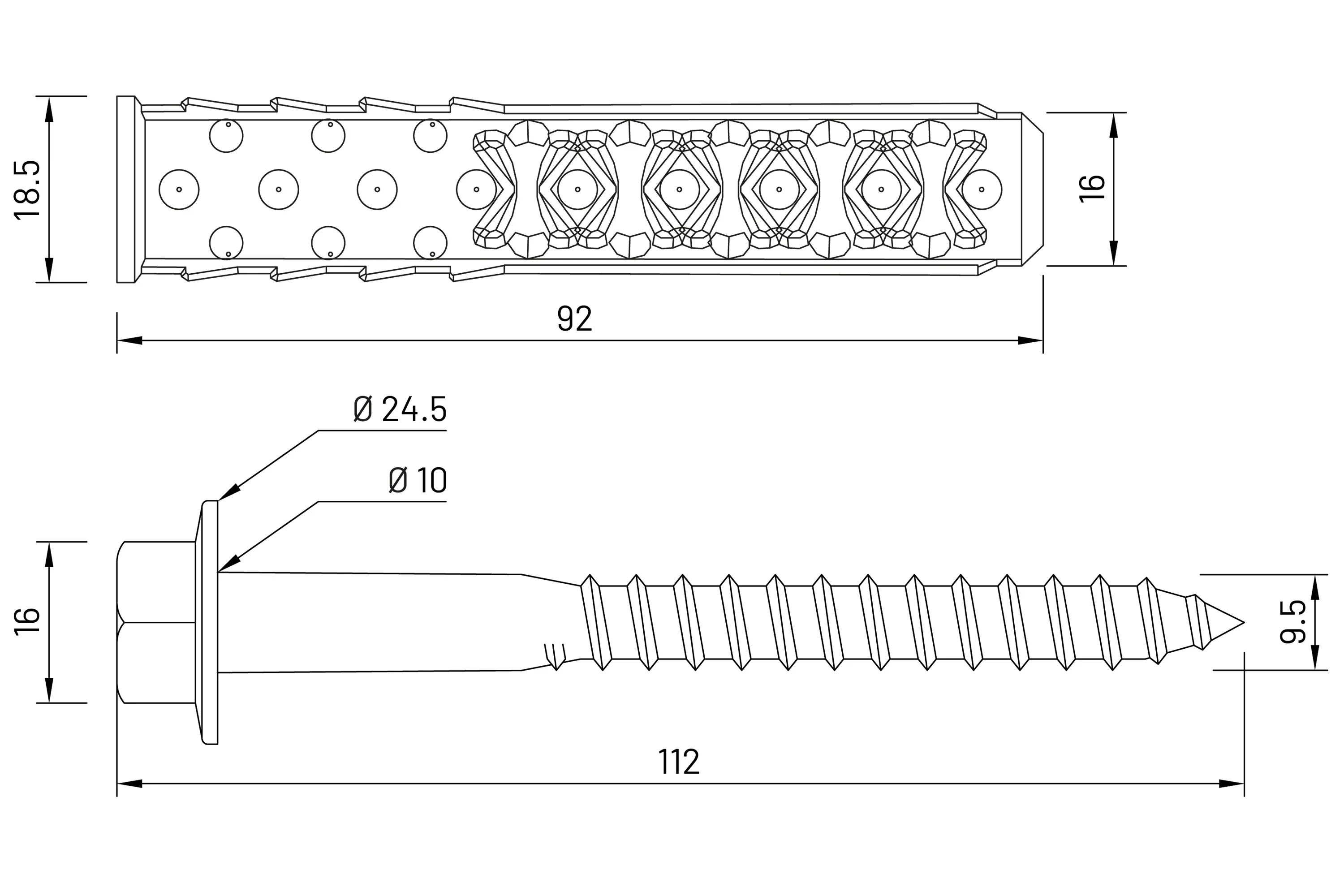 - Oversized, flanged head so no washer is required in most applications.